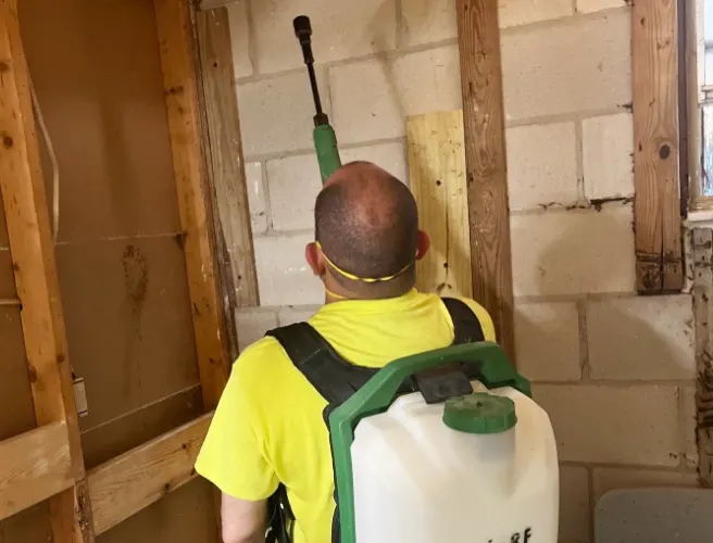 One-Stop Rebuild: Once the mold is gone, our licensed construction crew repairs the drywall and flooring immediately.
